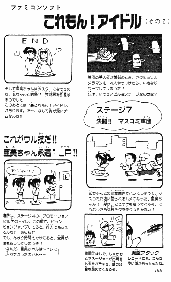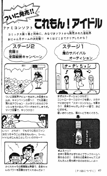 コミックス書き足し用に描いた、仮想ゲーム紹介。 所々に当時人気のファミコンソフトねたを使用していて、 ブラックホールに落ち続けるのはサン電子「アトランチスの謎」。 このゲームは、わんぱっくコミックでも攻略まんがを描いてます。 |