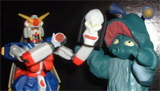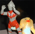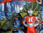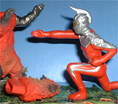 ダンディーウルトラ 「ゲッツ!! えりまきゲッツ!!」 ジラース 「返して〜〜!! ゴジラ着ぐるみ流用だと バレちゃうよぉ(ToT)」 |