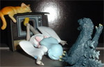 | ガシャポン、ゴジラ9 「くそ〜〜!! いつゴジラは 全身磁石の塊にしたんだ!!」 |