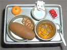 給食は三角食べで 食べましょ〜〜う!! パン、カレー、 脱脂粉乳と三角を 描くように・・♪ |