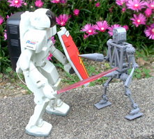 | 機動戦士HONDA・P3対先行者・中華キャノン わざわざこれをやるためP3のプラモ買ってきた(^_^) 同じネタやってる人多数に13ペソ・・・ 股間のミサイルはスプリング強いので、よく飛ぶよ!! ・・・なくなりやすいけど(^_^;)。 中華キャノンプラモは SOFTBANKの「ネットランナー7月号」の付録。 |