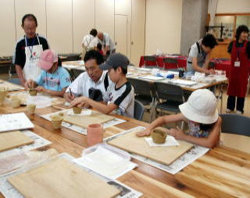 「輪積み」という方法で粘土の器を作ります。縄文時代から続く伝統の素焼き土器を作れます。