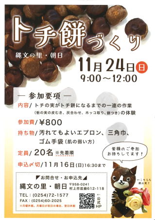 トチ餅づくり 11月24日(日) 9時~12時 参加費:800円 定員:20名 満員御礼 終了しました。 |
