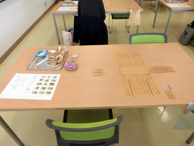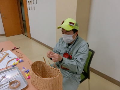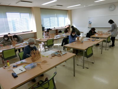 | 2021年3月11日(木) 「誘客推進」業務 「クラフトバッグ作り体験」を開催しました(^o^)丿 ※「新型コロナウイルス」感染拡大防止策として、「長時間接触」を避けるため、「二日間(午前中だけ)」に分けて開催しました(^J^) 時間短縮の為、底辺部分はあらかじめ編んであります(^o^) 私も挑戦しました(^<^) |