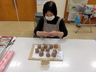 2021年3月14日(日) 「収益拡大」業務 「土器風鈴」の「玉付け」を行っております(^o^)丿 昨日、「玉」を焼きました(^J^) ひとつひとつ微妙に音が違うので、実際に聴いてからお買い上げ下さい(^O^) 3 |
