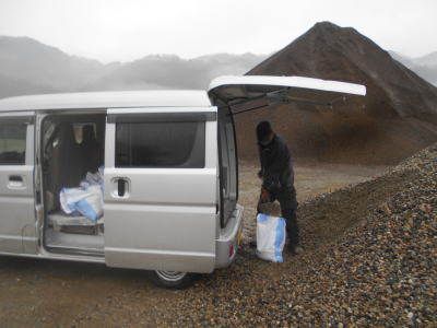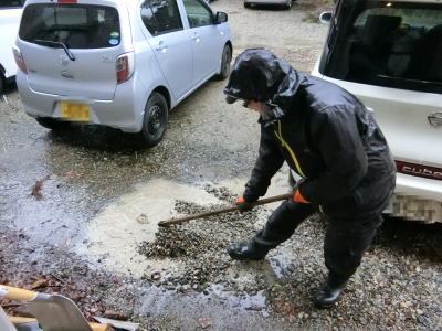 | 2021年3月16日(火) 「管理運営」業務 雨が降ると水溜まりになる場所に「砂利」を入れました(^o^)丿 最初は「施設の敷地内」から「砂利」を集めて敷いていましたが、予想以上に必要になったので「砕石場」に行きました(^J^) あいにく、作業開始したら小雨が降りだりました(>_<) |