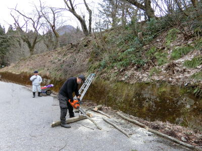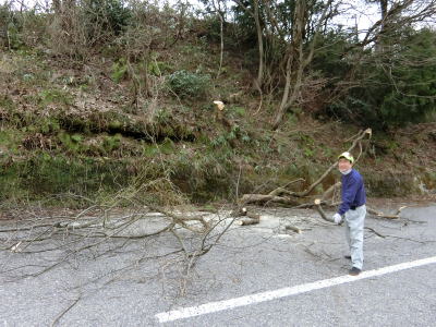 | 2021年3月30日(火) 「管理運営」業務 施設管理員と土手を整備しました(^o^)丿 雪の重さで倒れかけた樹木を伐採しました(^J^) 枝が車道にかかりそうでした。 ※写っていませんがカラーコーン等で安全確保をしております。 3 |