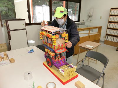 2021年3月2日(火) 「管理運営」業務 「イヨボヤ会館」から修理の依頼を受けました(^o^)丿 ロビーで展示していた「おしゃぎり屋台」の2階部分が外れました。 組み立て直して、木工用ボンドで補強しました(^J^) ボンドが乾いたら返却します(^o^) 2 |