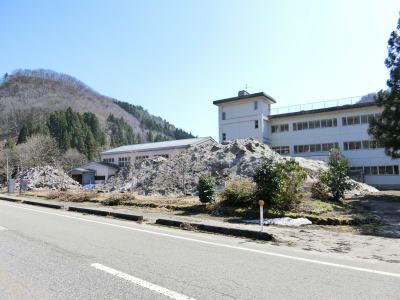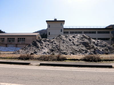 | 2021年3月24日(水) 昨日とは打って変わって晴天です(^o^)丿 鷲ヶ巣山(わしがっさん)もキレイでした(^<^) 閉校になった小学校の庭には「雪山」だ有りました(^J^) |