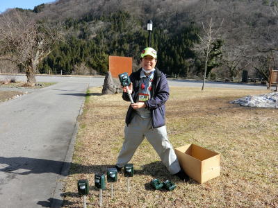 2021年3月25日(木) 「管理運営」業務 お天気が良いので「イノシシ」対策機の充電をしました(^o^)丿 ソーラーパネルで充電します(^J^) 充電が完了したらイノシシの来そうな所に設置します。 不規則で「超音波」と「光」を出します(^◇^) 3 |