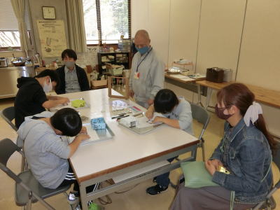 | 2021年3月6日(土) 「管理運営」業務 村上市内のご家族が来られました(^o^)丿 ご見学後、「まが玉づくり」に挑戦しました(^J^) 「新型コロナウイルス」対策の為、あらかじめ「原石の角」を落として、作業時間を短縮できるようにしております(^o^) 2 |