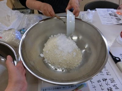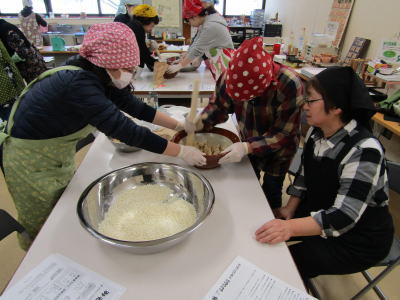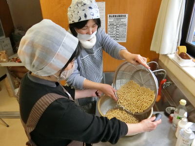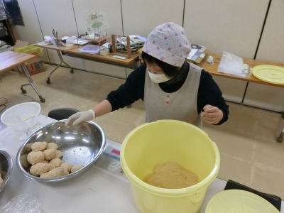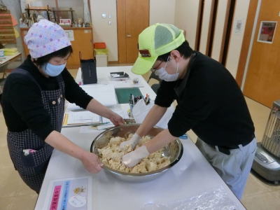 | 2021年3月4日(木) 「誘客推進」業務 「味噌づくり」の職員研修を行いました(^o^)丿 私も初めて「味噌づくり」に挑戦しました(^<^) 「豆を潰す」、「塩麹と混ぜる」作業が根気がいりました(^o^) 沢山の道具を使ったので、後片付けが大変そうでした(^J^) ※令和元年度(3月)も新型コロナの影響でイベントは中止でした。 2 |