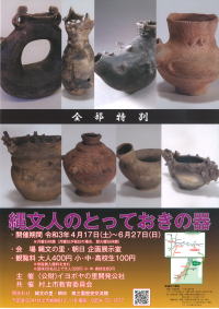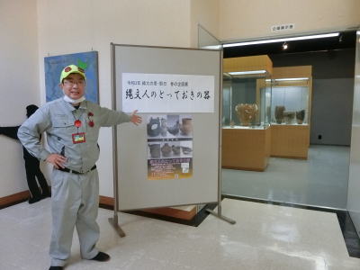 2021年4月17日(土) 「誘客推進」業務 春の企画展『縄文人のとっておきの器』は今日から始まりました(^o^)丿 館内は「新型コロナウイルス感染拡大防止」対策を十分に行っております(^o^) 開催期間:「4月17日(土)」〜「7月27日(日)」 観覧料:大人「400円」、小中高校生「100円」 |