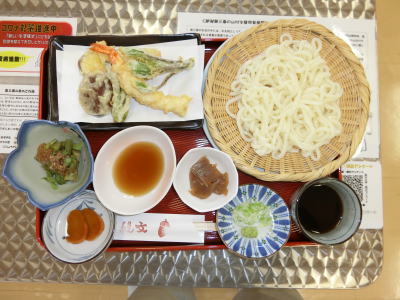 ![]() 天ざるうどん(900円税込み) ※サービス品付 |