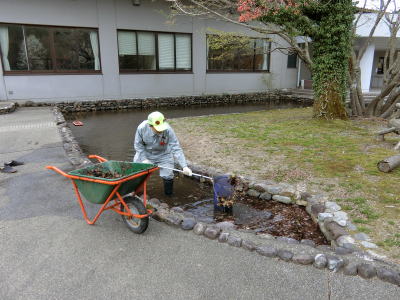 2021年4月27日(火) 「管理運営」業務 池の清掃をしました(^o^)丿 アミで沈んでいる「落ち葉」などを取りました(^<^) 今年は池の水は抜かずに清掃作業をしました(^J^) 3 |