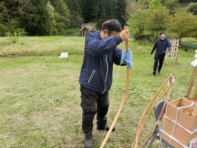 | 2021年4月21日(水) 「管理運営」業務 「和田」館長と女性職員が「縄文ピクニック」の準備をしました(^o^)丿 広場に「ピクニックエリア」を設けていました(^J^) 3 |