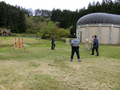 | 2021年4月30日(金) 「自主事業」業務 GW二日目、朝方雨でしたがお昼ごろ晴れました(^o^)丿 小グループの方が「まが玉」作り体験をされました(^<^) ストラック・アウト(1回100円)は「密」を避ける為、2セットにしました(^J^) 3 |