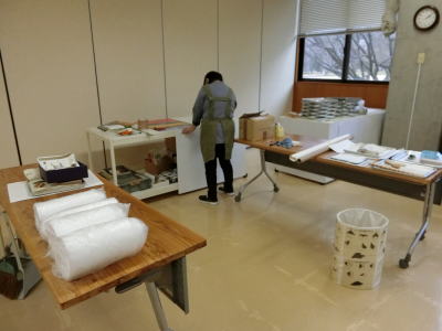 2021年4月4日(日) 「管理運営」業務 体験室の整理をしていました(^o^)丿 小道具などを入れる場所は古いポスターで「目隠し」をしました(^J^) 「まが玉づくり」もスグに体験できる様にセットを増やしました(^<^) |
