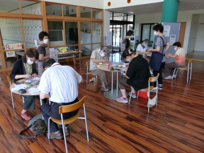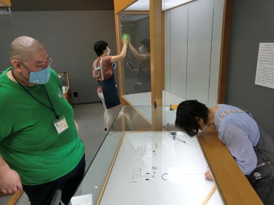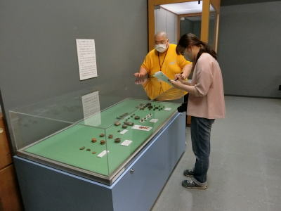 | 2021年7月6日(火) 「管理運営」業務 村上南小学校の皆様が来てくれました(^o^)丿 「和田」館長が館内をご案内されました(^J^) 見学後は、先生と一緒に「まが玉作り」体験をされました(^<^) お弁当を食べてから学校に戻りました(^J^) 3 |