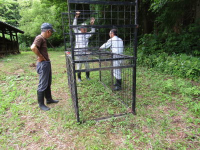 2021年7月2日(金) 「管理運営」業務 地元の猟友会の方が「イノシシ」罠の準備をされに来られました(^o^)丿 柵の動作確認などを行いました(^<^) 鉄枠の「塗料の匂い」が取れないと「使えない」そうです。 イノシシは「鼻」がとても良いらしいです(^J^) 0(夜、前6/30) |