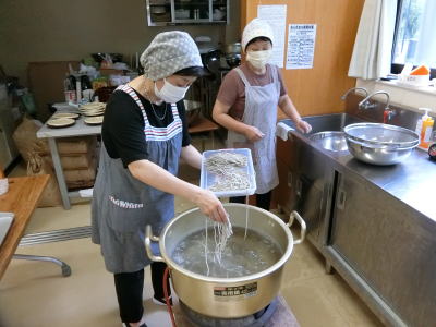 | 2021年7月28日(水) 「管理運営」業務 村上市内の小中学生が「そば打ち体験」に来てくれました(^o^)丿 3〜4人の班ごとに作業をしました(^<^) 最初に講師のお話を聞いて、途中は「お蕎麦を伸ばす」、「お蕎麦を切る」工程などを見てから作業をしました(^J^) 皆さん上手に「お蕎麦」が出来ました(^<^) その場で茹でて、美味しい「昼食」になりました(^o^) 0 |