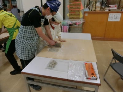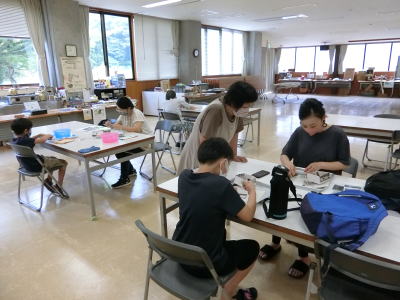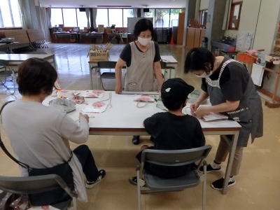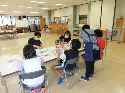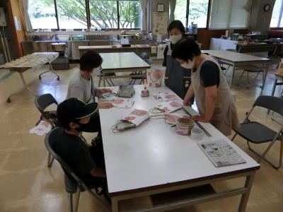 | 2021年7月14日(水) 「自主事業」業務 出前講座「おもしろ体験」第2弾を開催しました(^o^)丿 今回は「フラフト細工」で「ポリティシュケース」と、「クラフトバンド細工」で「縄文ポシェット」を作りました(^J^) 私はクラフト細工で「のり」を付け過ぎで「ヨレヨレ」になってしまいました(>_<) 「縄文ポシェット」は「ペットボトル(500ml)」を入れるのに丁度よいです(^<^) 多(暑かった) |