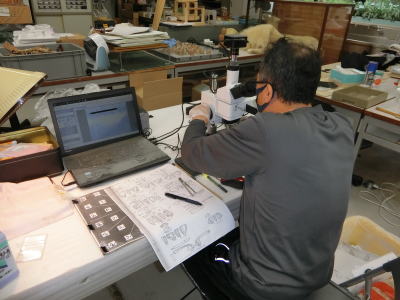 2022年5月26日(木) 「管理運営」業務 「新潟大学」の方が収蔵品の調査に来られました(^o^)丿 「黒曜石」は科学調査の為、借用されます(^J^) 虫眼鏡で調査している学生は「卒業論文」にも使うそうです(^<^) 3 |