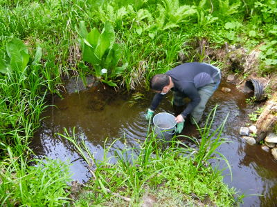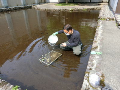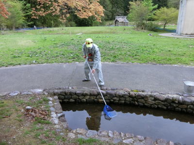 2022年5月18日(水) 「管理運営」業務 池の掃除をしました(^o^)丿 底に溜まった「落ち葉」をすくいました(^J^) 「メダカ」や「オタマジャクシ」が沢山いました(^<^) 3 |