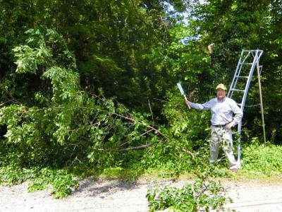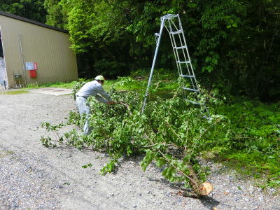 | 2022年5月27日(金) 「管理運営」業務 「木の枝」を切りました(^o^)丿 「東北電気保安協会」様より、「電線にかかりそうな木の枝が有る」との指摘を受けました。 「枝先」まで届かないので、少し「根元」から切りました(^<^) 日中の気温が上がり暑かったです(>_<) 今年は暑くなるのが早い気がします(^o^) 3 |