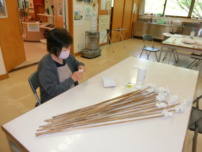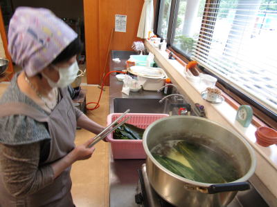 | 2022年5月28日(土) 「指定管理」業務 明日の「笹だんご」づくりの準備をしました(^o^)丿 邪魔にならない程度にお手伝いします(^J^) 「乾燥した笹」をお湯で戻しました(^<^) 茹でた後に「1枚」づつ、丁寧に拭きました 3 |