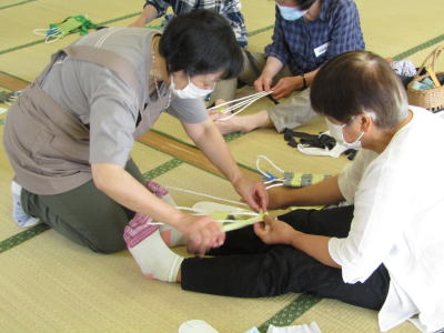| 2022年6月30日(木) 「指定事業」業務 「縄文の里・朝日」で「布ぞうり」づくりを開催しました(^o^)丿 6月23日の「キャンセル待ち」の方が増えたので「追加講習会」をしました(^o^) 気温が高いので「節電」と「熱中症」対策を行いながらの開催になりました(^<^) 皆さん上手に出来上がり喜んで帰られました(^o^) 3 |