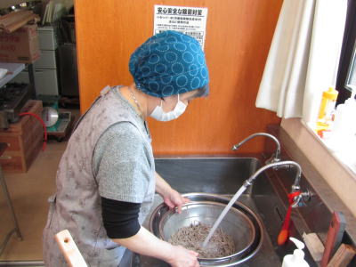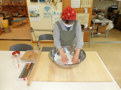 | 2022年6月5日(日) 「指定管理」業務 6月9日(木)に開催される「そば打ち」体験に向けて「自主研修」をしていました(^o^)丿 久しぶりの「そば打ち」なので初心に帰って、1工程、1工程を確認しながら作業をしていました(^J^) 「水回し」、「こね」、「伸ばし」、「切り」、「茹でる」作業の再確認をしていました(^<^) 3 |