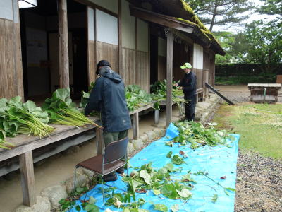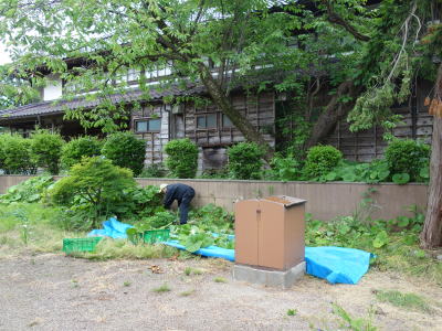 | 2022年6月7日(火) 「収益拡大」業務 「若林家」の「フキ」を刈りました(^o^)丿 小雨でしたので、急いで刈り、軒下で「葉っぱ」を取りました(^<^) 思ったより沢山収穫出来ました(^J^) 「缶詰」工場に持ち込みました(^o^) |