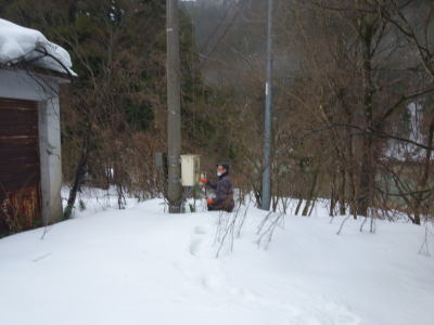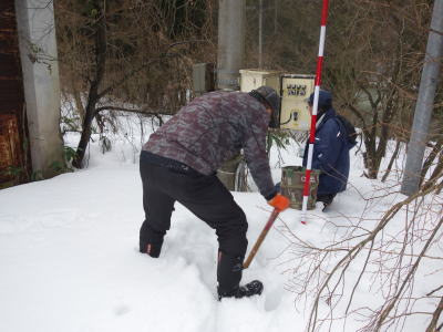 | 2023年1月12日(木) 「管理運営」業務 「給水ポンプ」のエラーがでました。 ※館内が「断水」になりました。 「カンジキ」を履き、ポンプ小屋へ行きました(^o^)丿 「分電盤」では異常を確認出来ませんでした。 「受水槽」に水がほとんど無い状態でした。 棒を刺し、雪を掘り、「水中ポンプ」を探しました。 ※一発で見つけました(^◇^) 「水中ポンプ」を点検したところ「動いていない」との事でした。 3.5 |