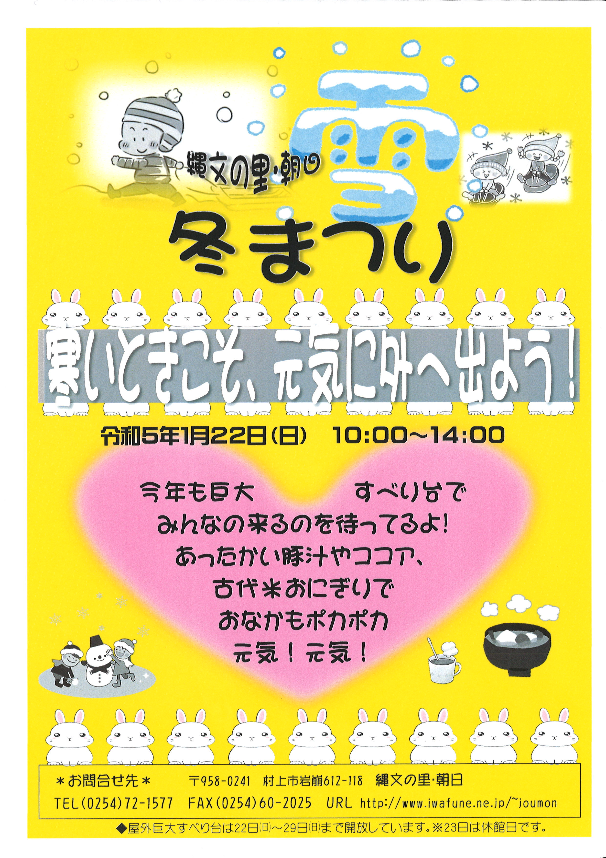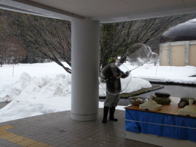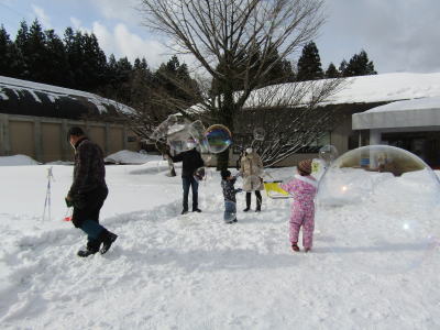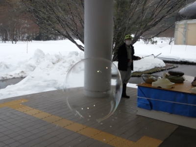| 2023年1月22日(日) 「自主事業」業務 「冬まつり」が開催されました(^o^)丿 お天気が心配されましたが、晴天に恵まれ、沢山の方々が「雪遊び」を楽しんで行かれました(^J^) ※「しゃぼん液」を強化しました(^◇^) 2年連続で「開催中止」だったので、私は「初」冬まつりでした(^<^) ケガも無く、大成功でした(^◇^) 5 |