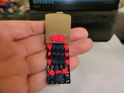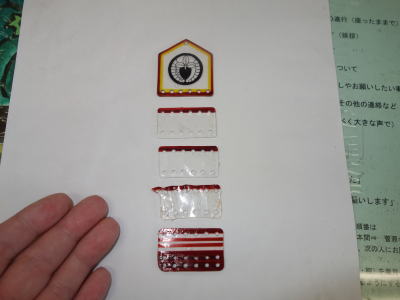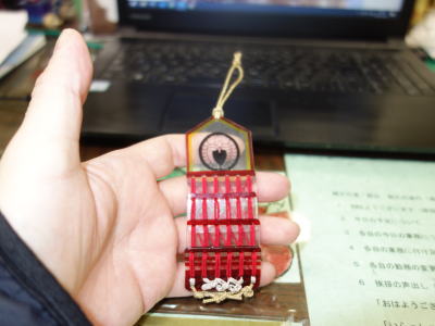 | 2023年1月9日(祝・月) 「収益拡大」業務 「甲冑ストラップ」の試作品が完成しました(^o^)丿 「プラ板」に「下り藤」の家紋を書き、オーブンで焼きました(^J^) 糸で縛って完成です(^◇^) ※関連記事2022年1月7日(土) ※関連記事2022年11月5日(土) 3.5 |
