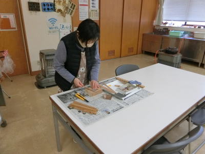 2023年3月21日(火) 「指定事業」業務 「春のやまごっつぉを食べる会」の準備をしていました(^o^)丿 「お箸」の元になる材料を作っていました(^J^) 色々と趣向をこらした「小技」が光ります(^◇^) ※満員御礼(10名) 令和6年度は「人数」を増やす予定です(^o^) 3 |