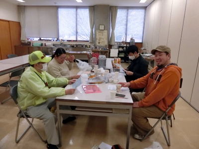 | 2023年3月25日(土) 「管理運営」業務 今年も「歩こう会」の皆様が来られました(^o^)丿 今年も7時半に「イヨボヤ会館」を出発し、休憩を取りながら「歩いて」来たそうです(約22km)(^J^) 今年は「体験室」が空いていなくて「食堂」を開放いたしました(^o^)丿 ※関連記事2022年3月26日 |