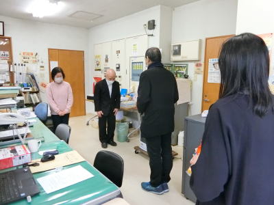 | 2023年3月31日(金) 「管理運営」業務 本日付けで、「和田」館長と「本間」さんが退職になりました。 「田嶋」事務局長と「石井」次長が来られました(^o^)丿 長い間お疲れさまでした<m(__)m> お二人には大変お世話になりました(^J^) 寂しくなりますがお元気でお過ごし下さい(ToT)/~~~ 3.5 |