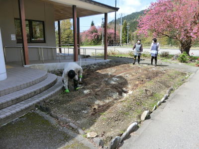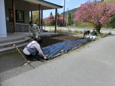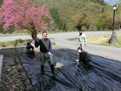 | 2023年4月19日(水) 「管理運営」業務 「花壇」の整備をしました(^o^)丿 数日前に「肥料」と「石灰」を捲いておきました(^J^) みんなで耕して、雑草対策に「マルチシート」を張りました(^<^) 今年も「マリーゴールド」を植える予定です(^J^) 3.5 |