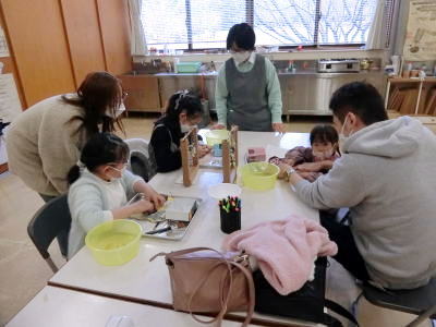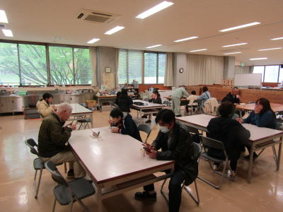 | 2023年4月9日(日) 「管理運営」業務 新潟市からご家族が来られました(^o^)丿 ご見学後、「まが玉」作りに挑戦しました(^J^) 今回は「三野原」さんが作り方を教えました(^<^) 3.5 |