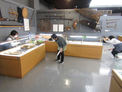 | 2023年4月7日(金) 「管理運営」業務 展示室の「ガラス清掃」を行いました(^o^)丿 「三野原」さんには清掃業務をしながら「展示内容」も確認して貰いました(^J^) 最初は覚える事が多くて大変ですが(^<^) 3.5 |