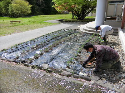 | 2023年5月10日(水) 「管理運営」業務 「コンニャク芋」を植えました(^o^)丿 1年物と2年物と3年物です(^J^) 「こんにゃく」づくり体験にも利用します(^<^) 3.5 |  植える | |||