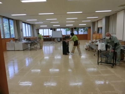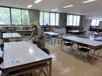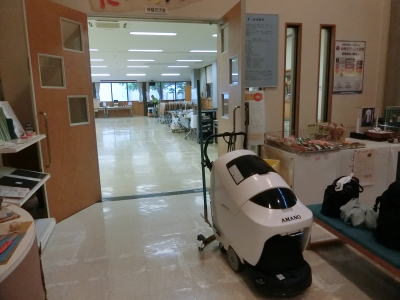 | 2023年5月15日(月) 「管理運営」業務 休館日 専門業者による「ワックス清掃」が行われました(^o^)丿 一時、停電検査が有りましたが「バッテリー駆動」なので大丈夫でした(^<^) 専用の機械などを使い、手際よく作業されていました(^J^) |  やまびこ食堂(停電中) | |||