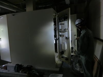 | 2023年5月15日(月) 「管理運営」業務 休館日 専門業者による「停電検査」が行われました(^o^)丿 30分程度だったので「ワックス清掃」には支障が無くて良かったです(^J^) 停電時も展示室は「非常灯」が付き、十分な「照度」が有りました(^<^) 3.5 |  機械室 | |||