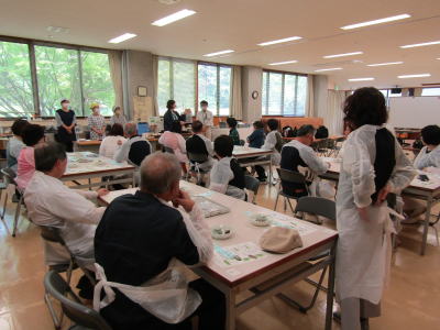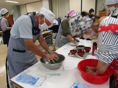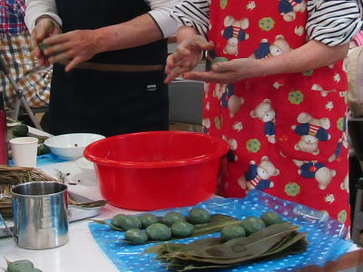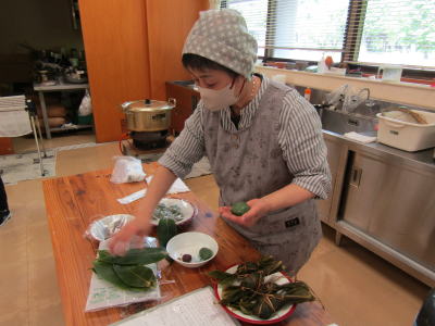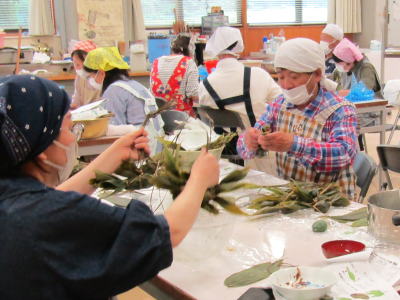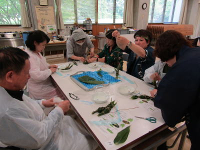 | 2023年5月28日(日) 「指定事業」業務 「笹団子づくり」が開催されました(^o^)丿 アケンケートの結果も「大好評」で、「親切でわかりやすかった」、「ヒモの結び方がわかって良かった」 又、「昼食(古代米おにぎり、豚汁、豆腐よせ)が大変美味しかった」との声が大半でした(^J^) |  作り方の説明 | |||