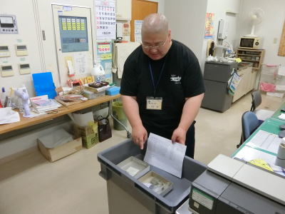 | 2023年5月19日(金) 「管理運営」業務 「青トラ石製磨製石斧」を村上市役所の方が取りに来られました(^o^)丿 学芸員の野田さんが準備をしました(^J^) 市役所の方は「写真を撮られると魂が抜ける」との事で撮影NGでした(^<^) 4 |  準備 | |||