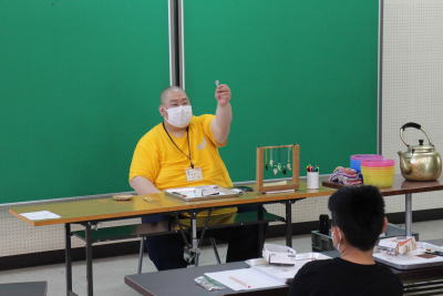 | 2023年5月20日(土) 「管理運営」業務 「おしゃぎり会館」主催の「初心者歴史体験講座」が開催されました(^o^)丿 当館から学芸員の野田さんが「講師」で出張しました(^J^) 「三の丸記念館」で参加者に「まが玉」作りを教えました(^<^) |  三の丸記念館 | |||