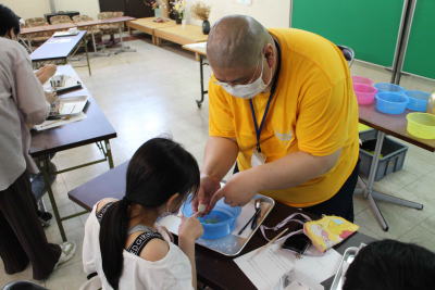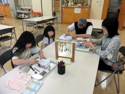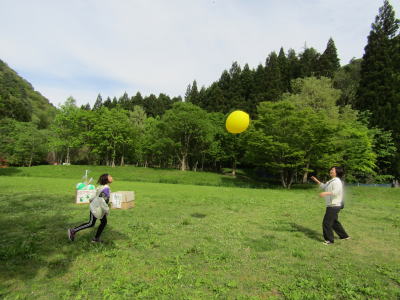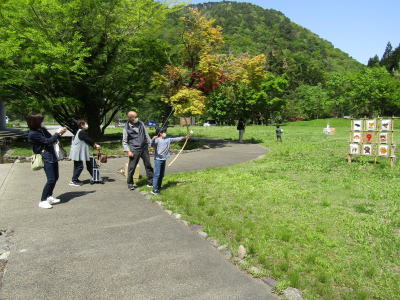| 2023年5月21日(日) 「管理運営」業務 新発田市から親子で来てくれました(^o^)丿 「まが玉」づくり、「お食事」をされました(^<^) 「じゃんぼしゃぼん玉」、「ストラックアウト」、「フリスビー」など沢山遊んで帰られました(^J^) 3.5 |  「まが玉」づくり | |||