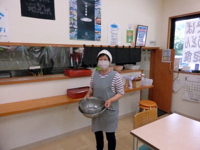 |  本間さん | 2023年5月20日(土) 「食堂」業務 「やまびこ食堂」に本間さんがお手伝いに来てくれました(^o^)丿 今年の三月末まで勤務していたので「即戦力」です(^J^) 蕎麦を洗う「ボール」と「ザル」がいつもと違う事に気付きました(^<^) ※「笹団子」づくりの時に間違って混ざったそうです(^J^) 3 | |||